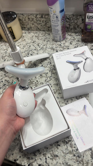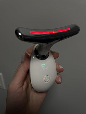 Feel the soothing effects of hypersonic vibrations and light therapy, revealing healthier, more vibrant skin on your face and neck.